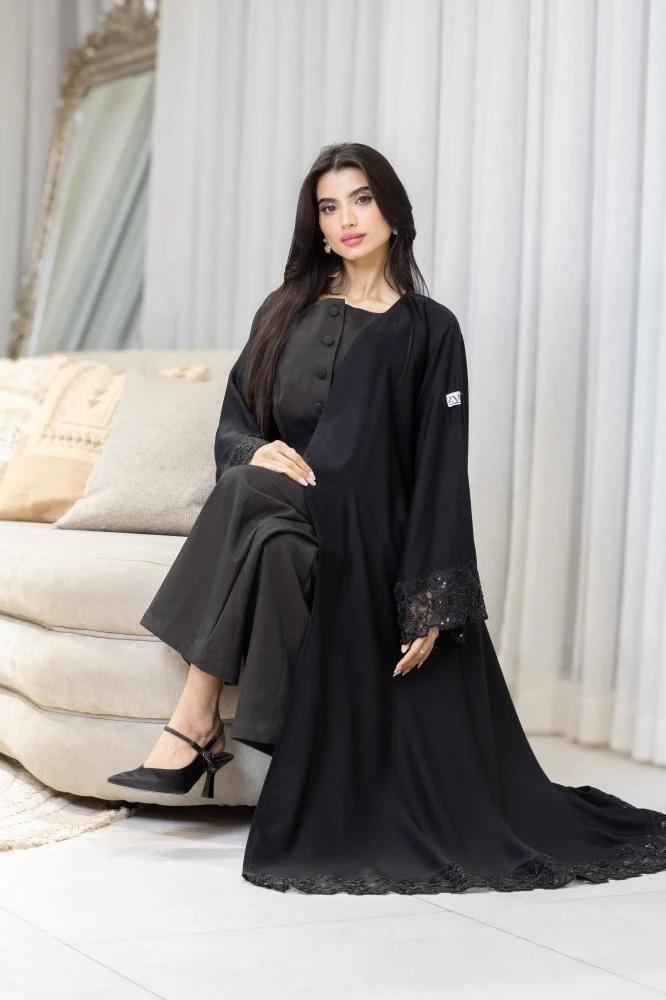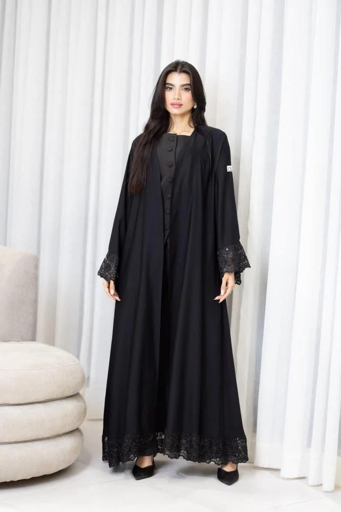 - عبايات سوداء مفتوحة تصميم عصري يبرز جمال الإطلالة النسائية