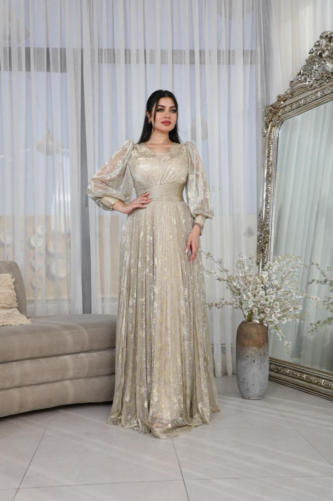- فستان سهرة ملكي تصميم فخم مع أكمام فانوس يعزز من أناقتك في المناسبات الخاصة.